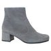 Botine elegante de dama, de culoare gri, confectionate din piele naturala intoarsa de inalta calitate, marca Semler. Model prevazut cu toc gros de 4.5 cm, care asigura stabilitate si confort pe tot parcursul zilei. Inchiderea se face cu fermoar, oferind o fixare sigura.