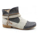 Botine pentru femei, marca Rieker, din piele ecologica. Model disponibil pe albastru,respectiv bej. Inchidere cu fermoar.