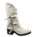 Cizme dama A S, din piele, de culoare alb murdar. Sunt decorate cu barete in exterior, au inchidere cu fermoar in interior. Inaltime caramb: 30 cm.