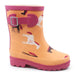 Cizme de cauciuc pentru copii, de culoare portocaliu, combinat cu roz. Au talpa semigroasa, catarama de decor. Inaltime cizme: 15 cm.