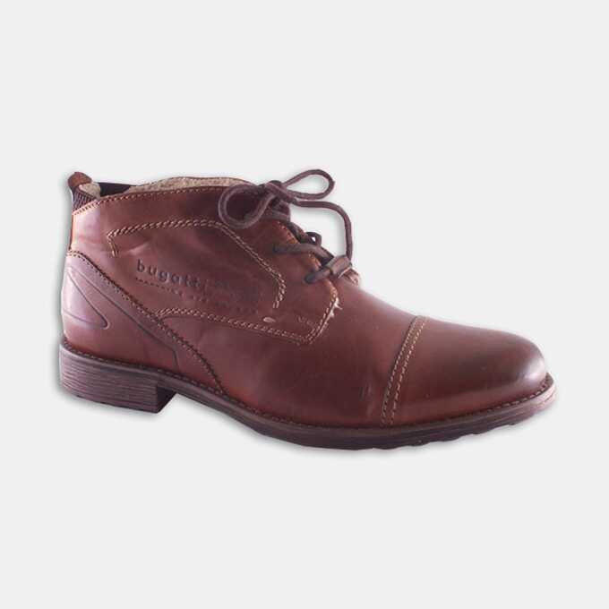 Ghete casual Bugatti pentru barbati, din piele, in culoarea maro deschis. Model foarte calduros, datorita captuselii de blana si al brantului special Thermo Insole, totodata Used Look, adica cu aspect folosit. Inchidere cu siret.