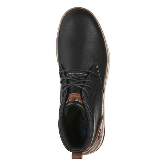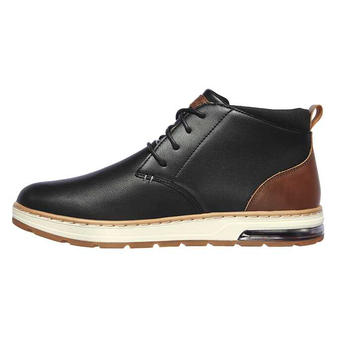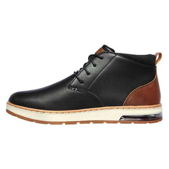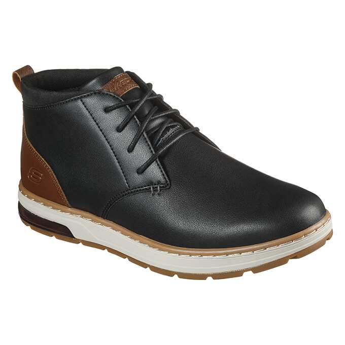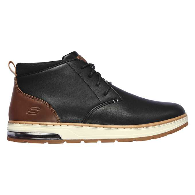 Ghete sport si casual, Skechers, pentru bartbati disponibil in culoarea negru combinat cu maro si putin alb. Gasiti aspectul ideal pentru sezonul rece cu un confort uimitor in pantofii SKECHERS Evenston. Partea superioara din piele neteda, cu sireturi, sport- casual, cu varf simplu rotunjit, cu cusaturi si accente suprapuse. Brant din spuma cu memorie AirCooled, talpa intermediara flexibila si confortabila.