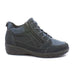 Ghete dama Reflexan, albastre, din piele nubuck. Au talpa groasa de 3,5 cm. la baza calcaiului, sunt decorate cu strasuri in fata. Inchidere cu siret si cu fermoar pe exterior pentru o incaltare mai usoara.