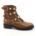 Ghete dama SPM, din piele, de culoare maro deschis. Sunt decorate cu barete, catarame si strasuri, au inchidere cu siret si cu fermoar pentru o incaltare mai usoara.