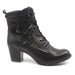 Ghete dama Bugatti, din piele, de culoare albastru inchis. Au aspect casual, cu decor floral pe partea exterioara. Inchidere cu siret si cu fermoar pentru o incaltare mai usoara.