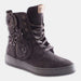 Ghete femei BullBoxer, din piele intoarsa, de culoarea gri. Model tineresc datorita floricelelor cu care sunt decorate, prevazut cu siret si fermoar.