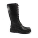 Ghete inalte, marca Rieker, din piele naturala, de culoarea neagra. Inchidere cu siret si fermoar. Caramb variabil, toc gros, de 4 cm.