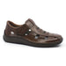 Pantofi barbati Rieker, din piele naturala, de culoare maro inchis. Model de vara cu decupatii, confortabil datorita latimii extra, a inchiderii adjustabil cu scai si talpii antistress, adica moale si flexibil, special in zona de indoire a talpii.