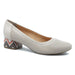 Pantofi pentru femei, marca Bioeco, din piele naturala, disponibil in culoarea bej. Modelul prezinta perforati, are toc gros, imprimat multicolor si mic de 6 cm.