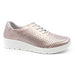 Pantofi Maria Conti pentru dame, din piele box, de culoare roz. Au talpa ortopedica, groasa de 3 cm. la baza calcaiului, sunt decorati cu perforatii. Inchidere cu siret.