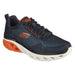 Pantofi sport Skechers pentru barbati, cu sireturi din material textil cu plasa proiectata, brant cu spuma cu memorie Air-Cooled, disponibil in cularea albastru combinat cu portocaliu si alb.