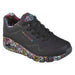Pantofi sport, Skechers, pentru femei disponibil in culoarea negru combinat cu nuante multicolore. Muralistul de renume international James Goldcrown aduce modelele sale iconice de inima #Lovewall la Skechers in aceasta colaborare inspirata. Mergeti cu „Love” oriunde ati merge in Skechers x JGoldcrown: Skechers Street™ Uno - Loving Love. Acest adidas la moda cu sireturi prezinta ornamentul cu imprimeu inima al artistului, partea superioara sintetica si perforata, cu o talpa interioara Skechers cu spuma de memorie Air-Cooled si o platforma cu talpa intermediara vizibila Skech-Air®. Partea superioara din material sintetic, cu sireturi in fata