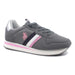 Pantofi pentu femei, marca U.S. Polo, de culoare roz, respectiv gri. Decorat cu sigla marcii in partea din lateral, cu dungi de culoare albastru, alb, rosu si in partea din spate la calcai cu putin alb. Au inchidere cu siret, talpa groasa si de culoare alba combinat cu albastru.