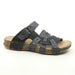 Papuci dama Rieker, din piele, de culoare albastra. Au talpa groasa de 2 cm la baza calcaiului, Antistress, adica moale si flexibil, special in zona de indoire a talpii. Sunt dotati cu catarama pe partea superioara pentru o reglare ideala dupa latimea piciorului.