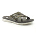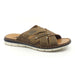 Papuci Rieker pentru barbati, in culorile maro si gri. Au talpa semigroasa, alba, sunt decorati cu cusaturi si cu logo.