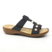 Papuci dama Rieker de culoare albastra. Au talpa groasa, confortabila, Antistress, adica moale si flexibil, special in zona de indoire a talpii si sunt dotati cu scai pentru o reglare ideala dupa latimea piciorului. Sunt decorati cu margele in fata.