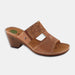 Papuci dama Reflexan, din piele, in culoarea maro deschis. Tocul semiinalt si gros este dotat cu sistem antishock, iar talpa cu flex zone, pentru a le mari comoditatea; bareta superioara este decorata cu pietricele colorate si cu elastic pe ambele parti, pentru o incaltare si acomodare mai usoara, dupa latimea piciorului. Latimea G.
