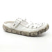 Papuci comozi Rieker pentru dame, din piele, de culoare alba. Au talpa groasa de 3 cm, Antistress, adica moale si flexibil, special in zona de indoire a talpii. Sunt dotati cu scai pentru o reglare ideala dupa latimea piciorului.