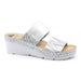 Papuci medicali Ledi pentru dame, din piele intoarsa, de culoare argintiu si bronz. Au talpa groasa de 6 cm la baza calcaiului, ortopedica, dotata cu brant anatomic cu gel. Sunt dotati cu elastic pentru o incaltare si acomodare ideala dupa latimea piciorului.
