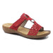 Papuci dama Rieker, in culoarea rosu. Au talpa groasa de 2 cm, Antistress, adica moale si flexibila, in special in zona de indoire a talpii si sunt dotati cu scai pentru o reglare ideala dupa latimea piciorului.