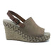 Sandale cu platforma pentru femei, Fashion, din material textil asemanator pielii intoarse si piele ecologica, disponibil in culoarea maro deschis combinat cu bej. Au talpa groasa, decorata cu snur impletit, toc de 10 cm si inchidere cu catarama.