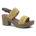 Sandale dama cu toc Fashion, din material sintetic, disponibil in culoarea galben. Modelul este prevazut cu catarama pentru o incaltare mai usoara, are toc de 7,5 cm si este decorat in partea superioara cumodel crosetat iar la talpa cu snur.