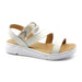 Sandale comode pentru femei, marca Maria Conti, din piele naturala, de culoarea alba. Modelul este recomandat persoanelor cu piciorul mai lat. Grosime talpa: 2,5 cm.