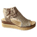Modelul se remarca prin talpa tip wedge (platforma cu toc), care ofera stabilitate si o postura corecta, avand o inaltime a tocului de 5,5 cm si o platforma de aproximativ 2,5cm. Varful deschis asigura respirabilitate, fiind potrivit pentru zilele calduroase.