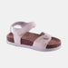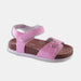 Sandale Happy Bee pentru fetite,in culorile roz si alb. Comode datorita talpii groase, cu catarama in fata pentru reglare, inchidere cu scai.